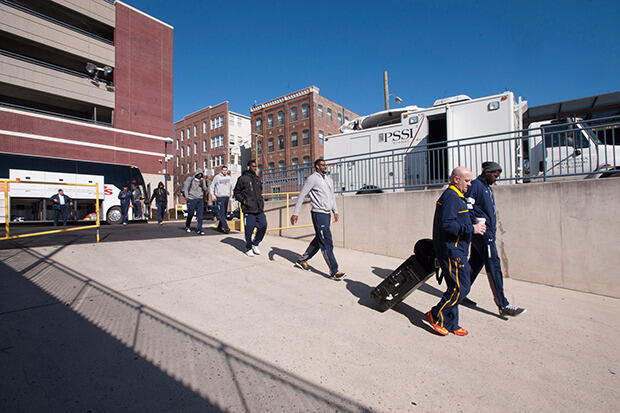 Meanwhile, swirling in the team’s orbit, from alongside the court to the deepest recesses of the arena, a small army of men and women move with swift but unhurried efficiency to complete their own preparations for that night’s game.