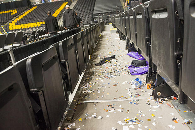 The game finished and the fans gone, cleanup and preparations for the next event will soon begin. In addition to VCU men’s and women’s basketball games and women’s volleyball matches, the Siegel Center is home to a host of other activities, including the upcoming state high school basketball championships, which will feature 36 games played over the course of six jam-packed days.