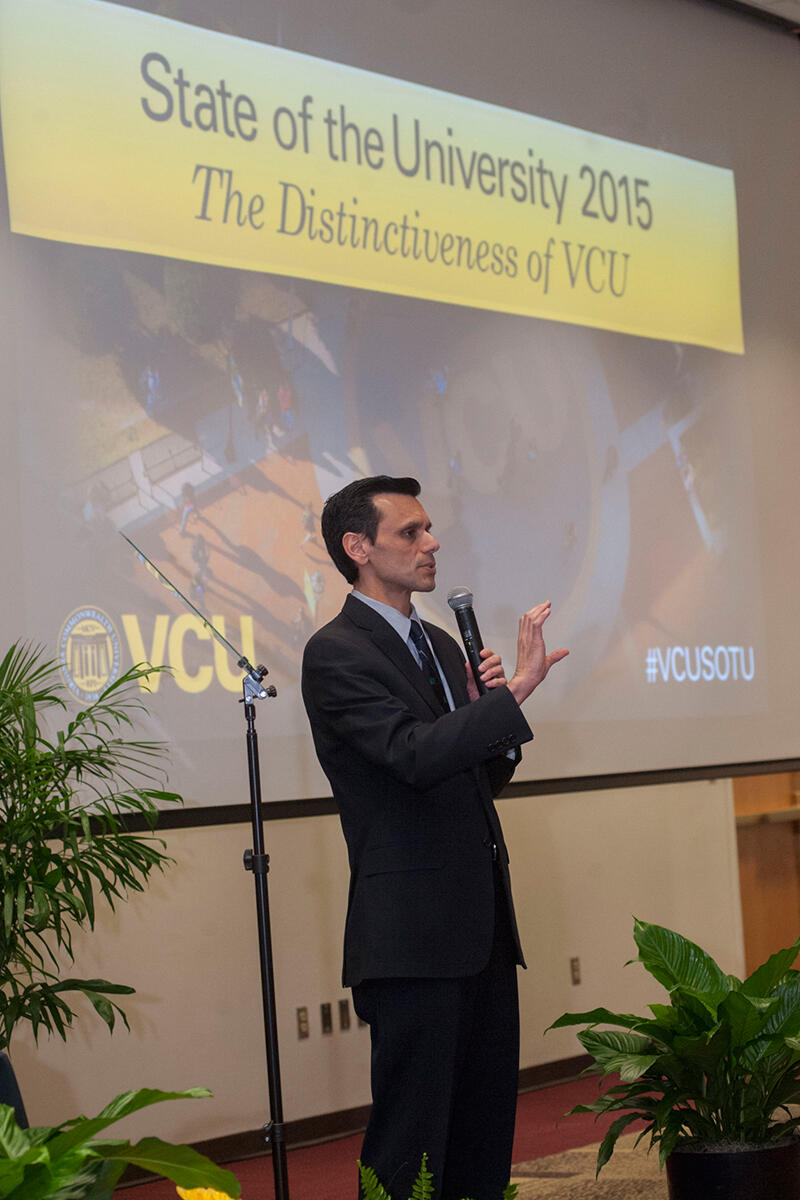VCU President Michael Rao, Ph.D., highlighted the distinctive accomplishments of Moore and several other members of the VCU community today during his second annual State of the University Address. More than 250 people attended the event, and others watched the speech online.