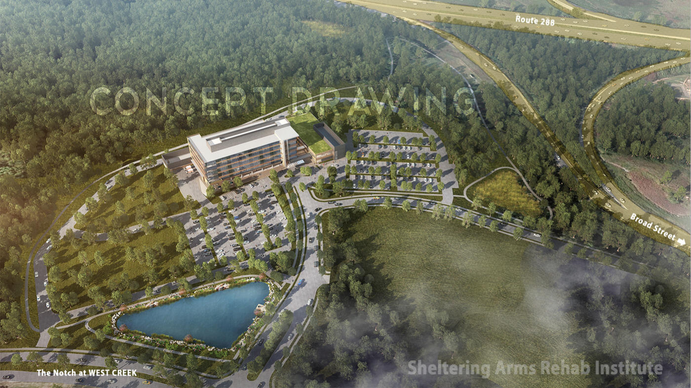 The joint venture combines inpatient beds from both organizations to create a multimillion dollar state-of-the-art destination hospital focused on caring for individuals who have survived strokes, spinal cord injuries or brain injuries, as well as those in need of general rehabilitation or various neurological diseases and disorders. Sheltering Arms Rehab Institute will be located on a 25-acre site in the West Creek Medical Park off Broad Street Road, just east of the state Route 288 interchange.