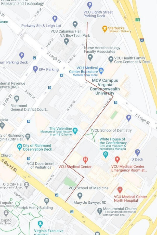 “Our hope is that the sidewalk graphics will prompt people to be aware of what’s happening around them,” Venuti said. “The RAMSWay signs give the MCV Campus community a set path to follow, especially at night. While we know that drivers, cyclists and pedestrians all play a role in keeping roads safe, we are thankful to have these initiatives implemented, especially as VCU and VCU Health evolve and grow on the medical campus.”