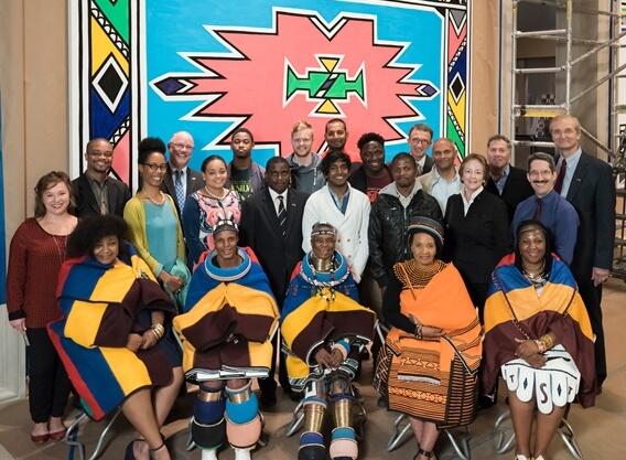 The annual trip sometimes includes a jaunt into Washington, D.C., or to local attractions such as the Virginia Museum of Fine Arts. Making this year’s excursion even more special was the coinciding visit of Esther Mahlangu, the “most renowned artist of South Africa’s Ndebele people,” according to the museum, which commissioned Mahlangu to make two large-scale paintings as part of the permanent collection in its African gallery. The UKZN students, Mahlangu and her family and members of the South African Embassy toured the museum together.