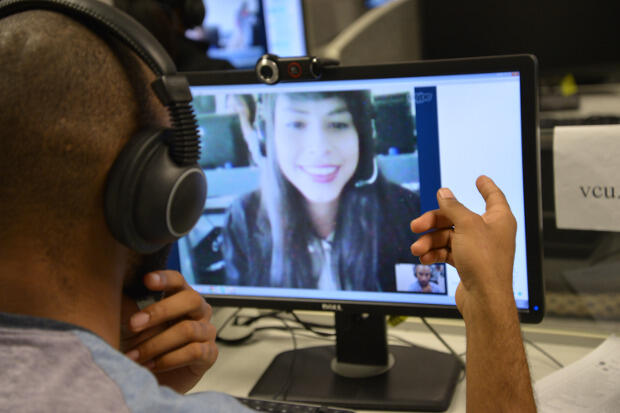 The VCU students were holding their end of the conversations in the World Studies Media Center in Hibbs Hall as part of a foreign language experiential learning program called Teletandem, in which VCU students studying Spanish, Chinese, Russian, French and Italian communicate face-to-face with native speakers.