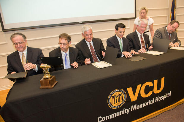 Representatives of the Virginia Commonwealth University Health System and Community Memorial Healthcenter (CMH) in South Hill, Va., signed an affiliation agreement on Friday to join operations on July 1. With the agreement, which was celebrated at a community ceremony and reception in South Hill, CMH is renamed VCU Community Memorial Hospital and is part of the VCU Health System.