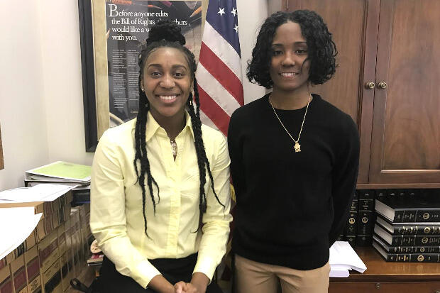 VCU basketball players Ashley Pegram and Isis Thorpe volunteer during General Assembly session