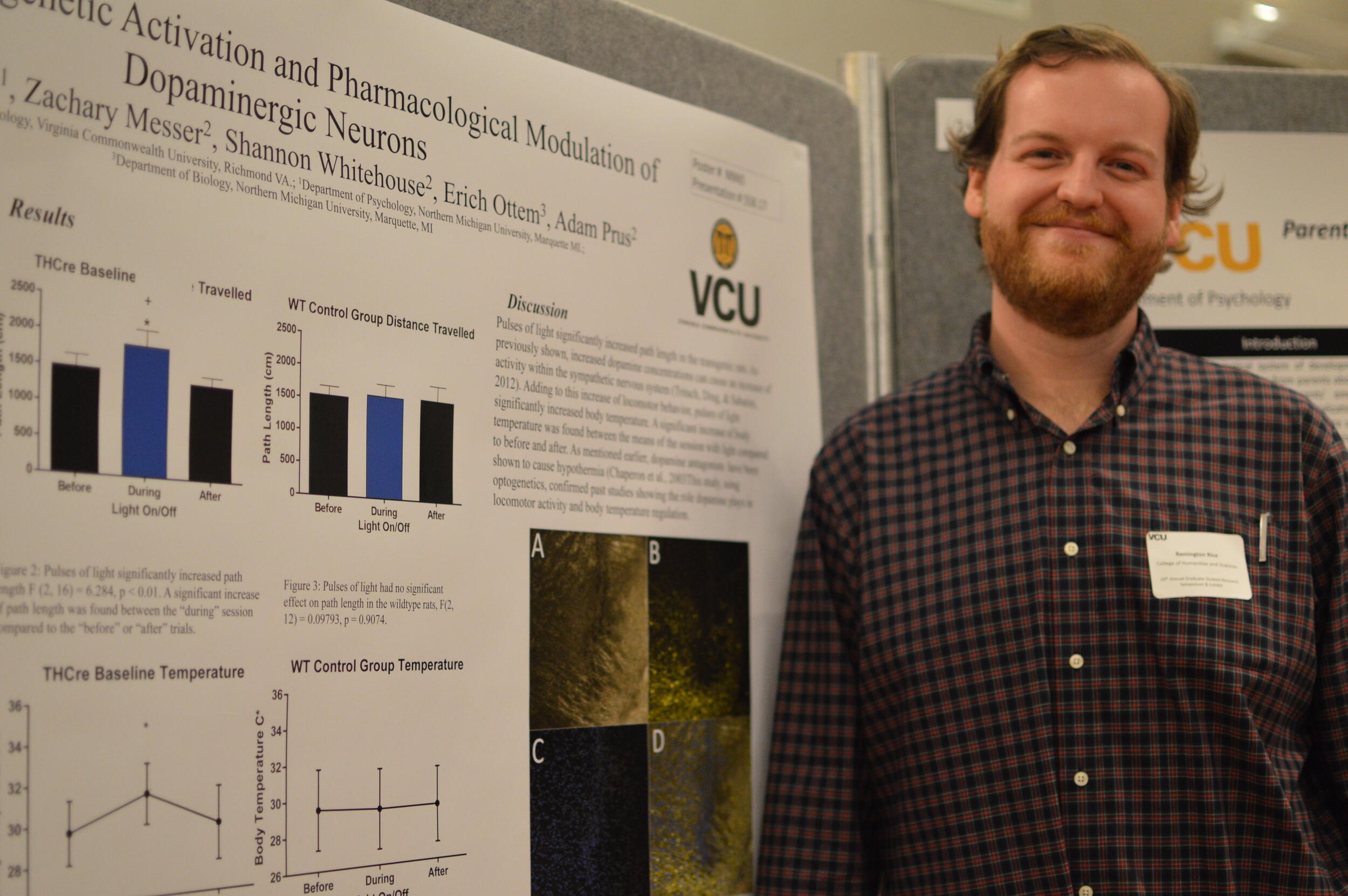 When I was a junior at Northern Michigan University, I heard a presentation about optogenetics and I was fascinated. I was amazed. I learned everything I could about it over the next three years. Once I was accepted into the graduate program at Northern Michigan University, my mentor Adam Prus, Ph.D., head of Psychology at NMU and a VCU alum, helped supply funding for equipment and animals. I am eternally grateful for his assistance. This was the first project with optogenetics conducted at Northern Michigan University and it was my master’s thesis. I joined the health psychology doctoral program at VCU in the fall of 2016, and I am currently developing my dissertation.