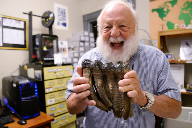 “After we discovered the remains, we did a stratigraphic study, looking at what’s the sequence of sediments and so forth … but the owner would not let us dig it up,” said Johnson, as he dropped off a sampling of fossils at VCU. “And, as a result, 38 years went by. In my cabinet, I kept that stupid fragment of the jaw and this tooth that was cavity ridden.”