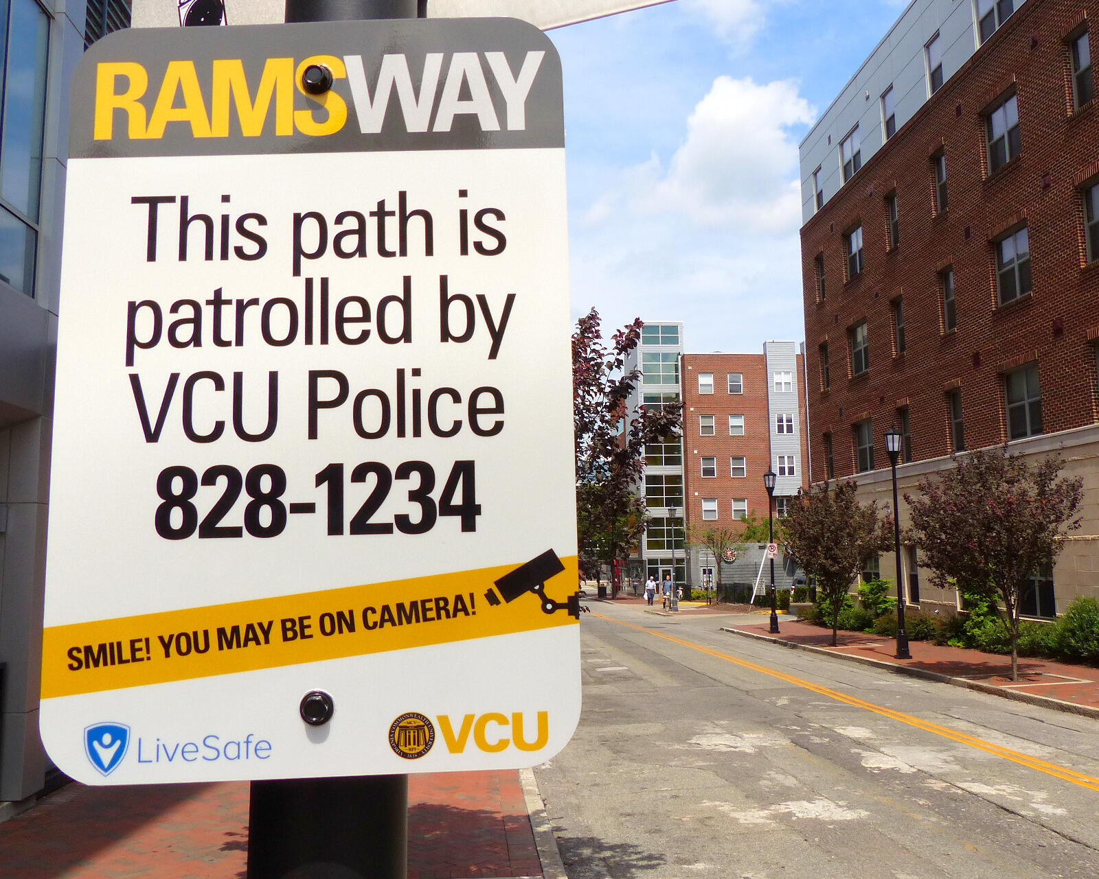 These paths are intended to supplement existing personal safety habits and VCU’s safety efforts on both campuses by bringing community members together onto common routes. RAMSWay paths have ERTs phones for easy phone access to VCU Police and are subject to passive video monitoring. Police officers also patrol those routes, giving students, faculty and staff more opportunities to engage with officers. Should there be an emergency on a RAMSWay path, police still need to be actively summoned to respond. LiveSafe app users can follow the paths electronically on the app’s “safety map” feature.